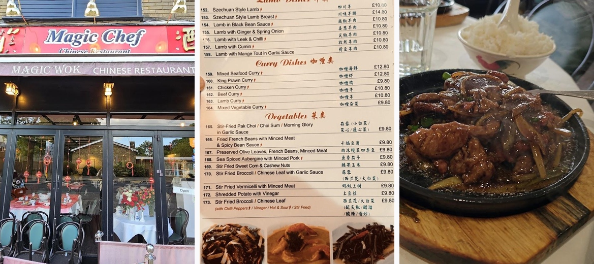 Magic Chef Chinese Restaurant is a delightful eatery in Egham, offering an authentic taste of Beijing and Sichuan cuisine. The space features a charming latticed ceiling and walls adorned with traditional Chinese art, creating a warm atmosphere perfect for casual dining or a quick takeaway. At 17 High St, the restaurant is popular among locals and tourists alike, making it a go-to for flavorful dishes and excellent service. Price points range reasonably from £10 to £20, delivering exceptional value with a menu packed full of variety. With an impressive selection of both traditional and unique dishes, Magic Chef captures the essence of Chinese culinary artistry right in the heart of Egham.